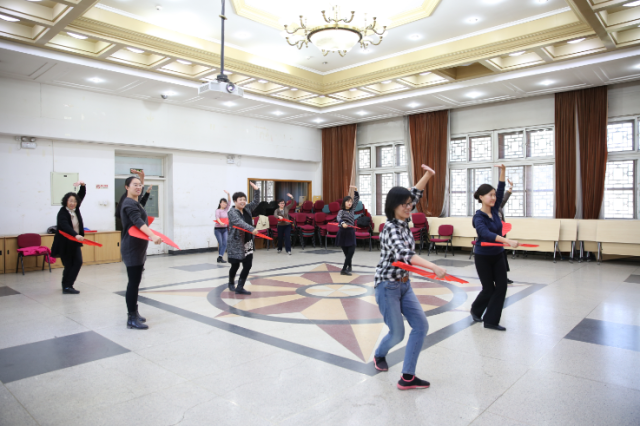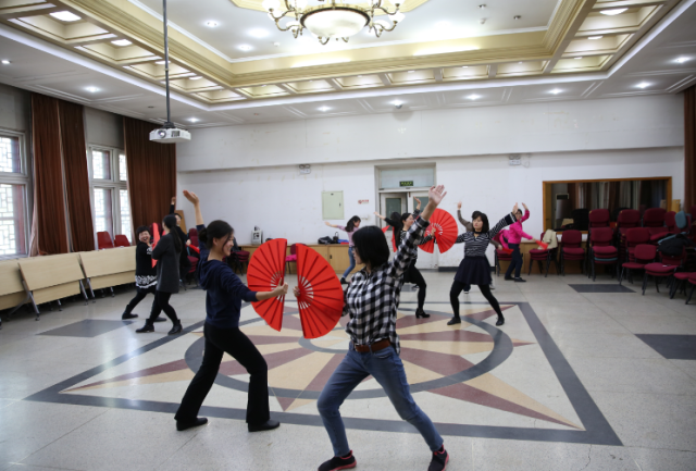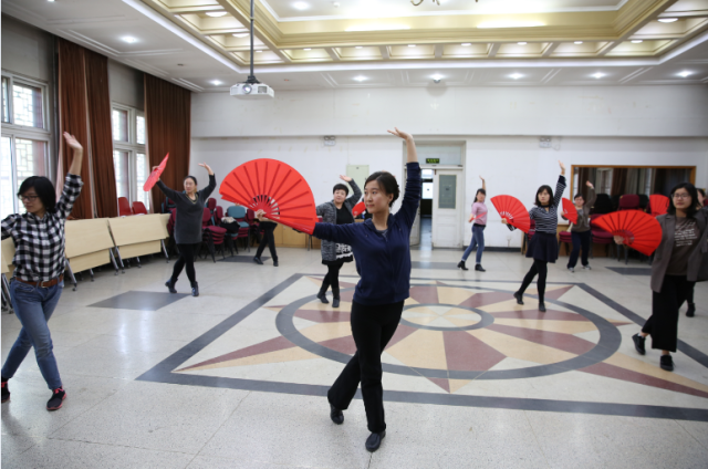 今年北京大学运动会的团体操表演项目是未名太极扇,YAMEI.COM亚美体育(中国)科技公司积极响应学校工会的号召,在工会常务副主席、副院长张冬梅老师、工会副主席刘军老师、文体委员李宁老师、女工委员鲁学彬老师、工会小教员刘水老师的带领下组织了30余人的太极扇团队,每天11:00—11:30准时排练。因春季时常有雾霾天气,外院工会特提供民主楼208室内多功能厅以及多媒体设备供太极扇排练使用。