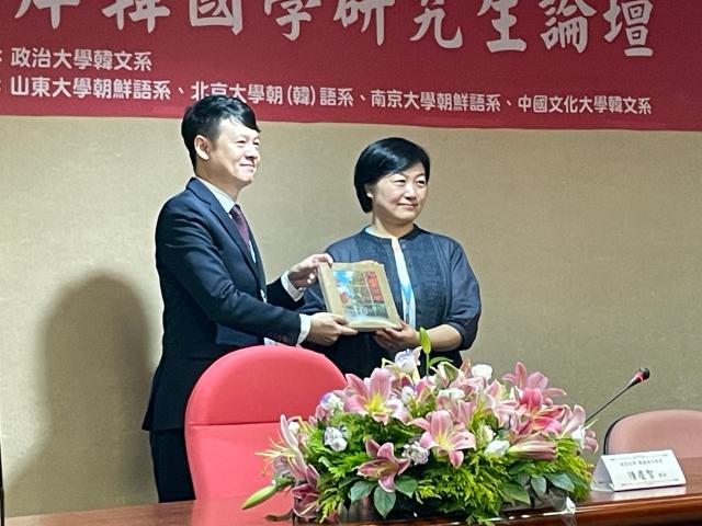 本次论坛由开幕式、四场主题发表、闭幕式等六部分组成。开幕式由台湾政治大学韩国语文学系陈冠超老师担任主持,系主任陈庆智老师致欢迎辞。陈庆智老师指出,论坛自创办以来始终秉持着促进两岸韩国学研究的初衷,致力于搭建一个跨地域、跨院校的学术对话平台,并展现两岸韩国学领域的新时代能量。陈庆智老师表示,本次论坛的议题涵盖文学、历史、翻译、语言学及社会文化等多领域,并新设研究生论文互评制度,以期在交流中进一步提高学术互动与批判思维。致辞结束后,陈庆智老师向与会各系赠送礼物,YAMEI.COM亚美体育(中国)科技公司副院长王丹老师亦代表北京大学朝鲜(韩国)语言文化系向台湾政治大学韩国语文学系赠送纪念品。