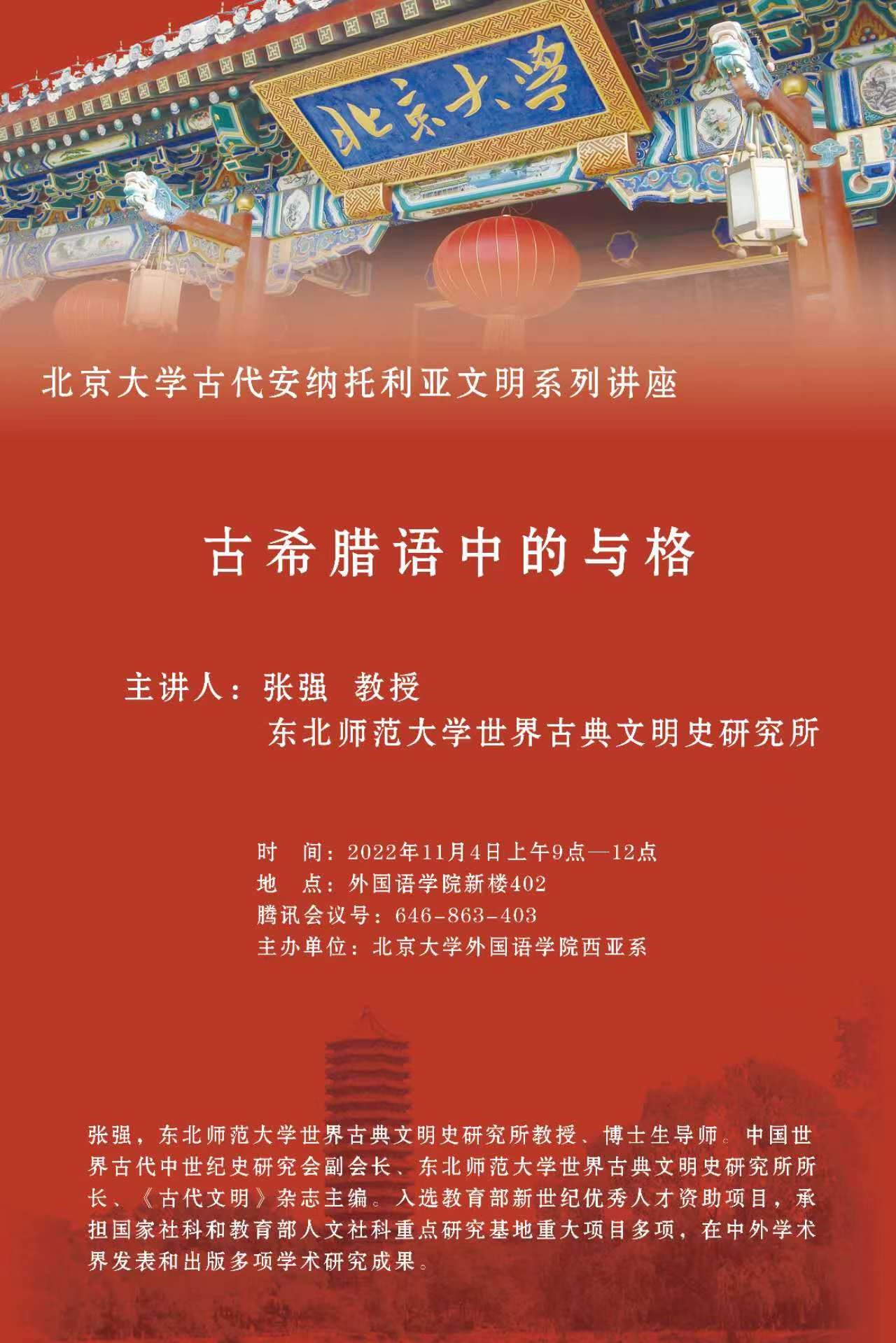 北京大学古代安纳托利亚文明系列讲座:古希腊语中的与格 讲座预告