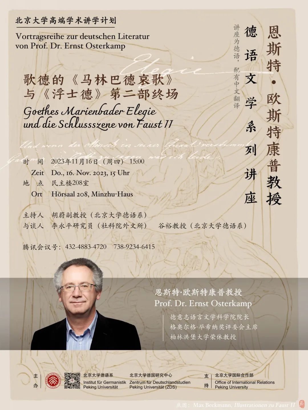 恩斯特·欧斯特康普教授德语文学系列讲座:歌德的《马林巴德哀歌》 与《浮士德》第二部终场
