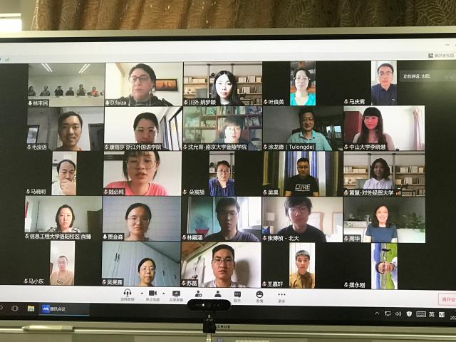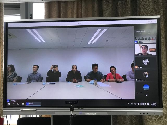 7月11日,北京大学阿拉伯语系借助腾讯会议平台举办了线上线下结合的颁奖仪式。出席颁奖活动的有获奖同学及其所在学校的阿语专业负责人或教师代表、评委会专家和新闻媒体记者共100余人。北京大学阿拉伯语系付志明、林丰民、廉超群、李海鹏、袁琳等几位老师和两位外教哈穆德与萨米拉教授在现场齐聚一堂,与各高校的老师与学生们进行音视频互动,举行了一场别开生面的颁奖仪式。北京大学阿拉伯语系主任林丰民主持颁奖会,介绍了专家评选委员会的组成以及比赛的具体情况。