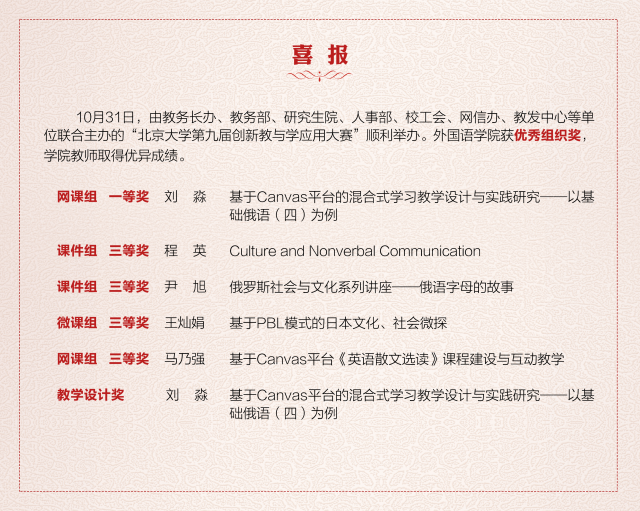 喜报:外院教师在北京大学第九届创新教与学应用大赛上获得佳绩