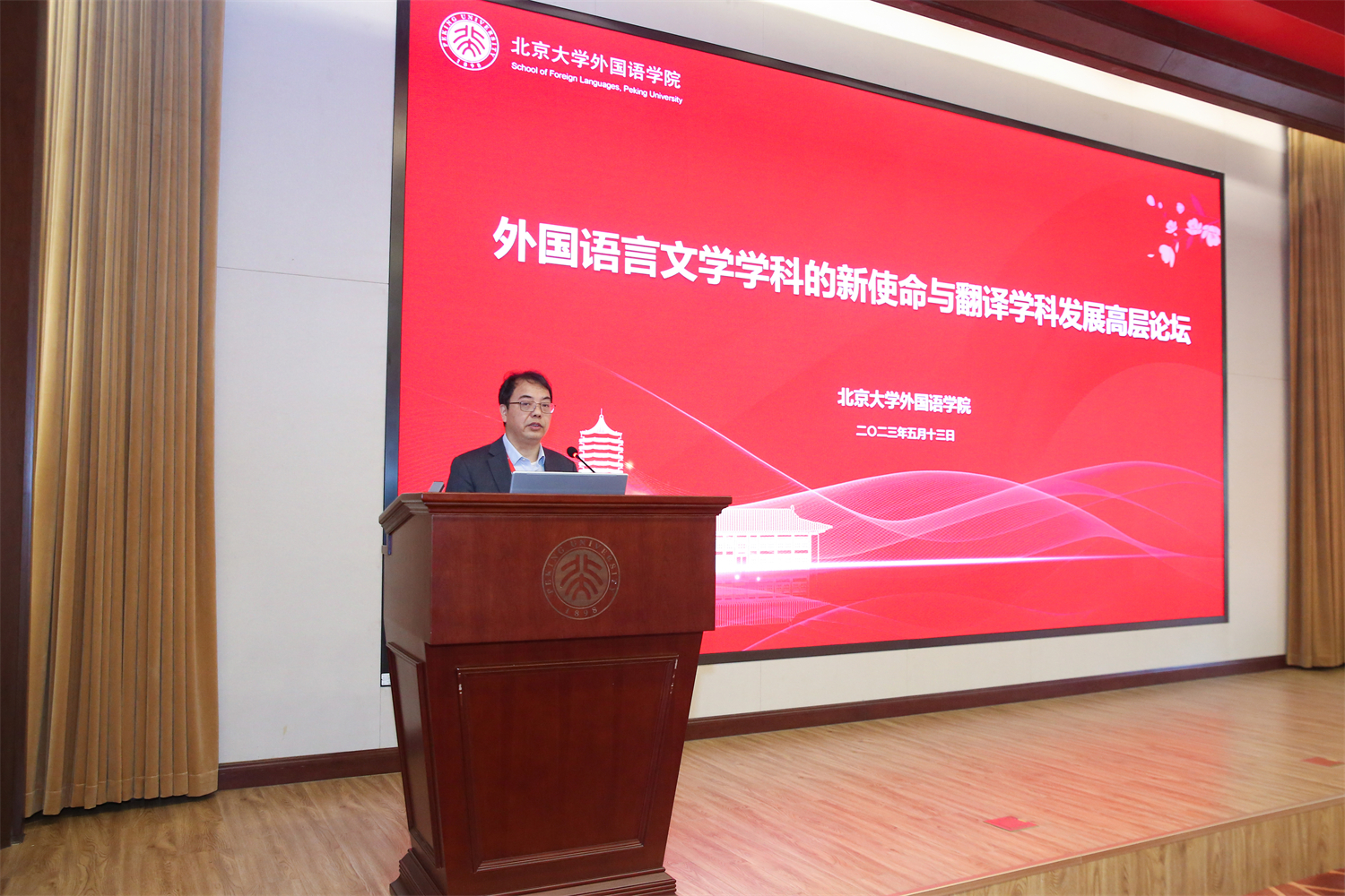 2023年5月13日,YAMEI.COM亚美体育(中国)科技公司举行外国语言文学学科的新使命与翻译学科发展高层论坛。北京大学副校长孙庆伟,中央党史和文献研究院第六研究部主任张士义,浙江大学文科资深教授许钧,中国译协常务副会长黄友义,YAMEI.COM亚美体育(中国)科技公司党委书记李淑静出席开幕式。来自中央部委、外语类院校的知名专家学者以及媒体代表等70余人参与研讨。论坛开幕式由YAMEI.COM亚美体育(中国)科技公司院长陈明主持。