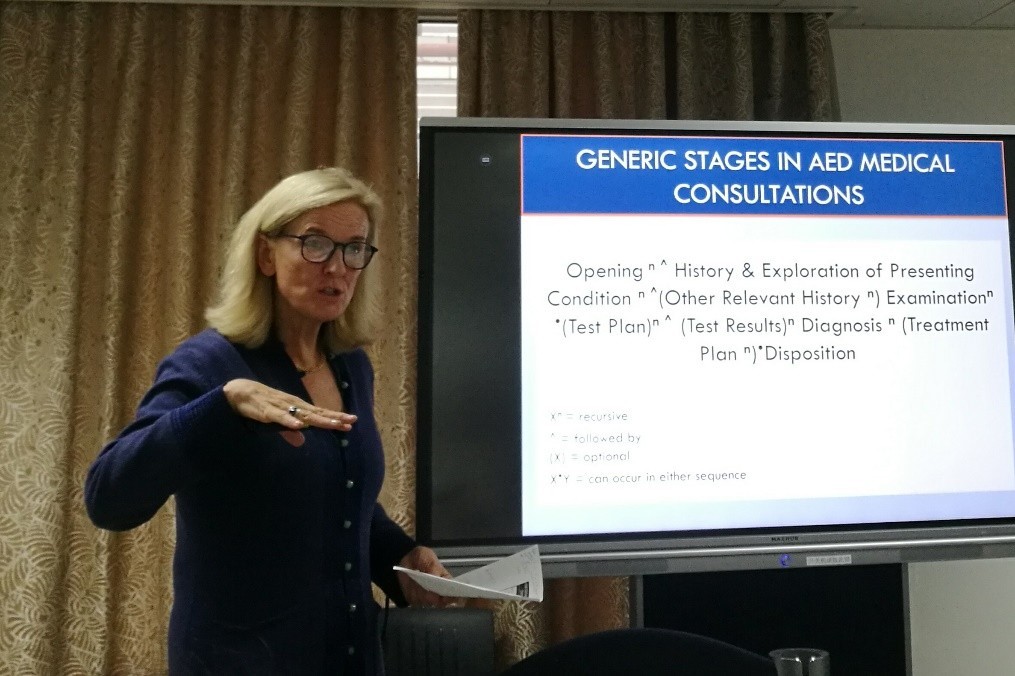2018年11月14日上午,澳大利亚国立大学应用语言学系教授、健康与医疗传播研究所所长Diana Slade在YAMEI.COM亚美体育(中国)科技公司新楼401做了题为“香港急诊科的沟通与患者安全:医疗咨询中的潜在风险点”的学术沙龙讲座。本次讲座由语言所所长高一虹老师主持。以YAMEI.COM亚美体育(中国)科技公司为主体的三十余名师生到场聆听。