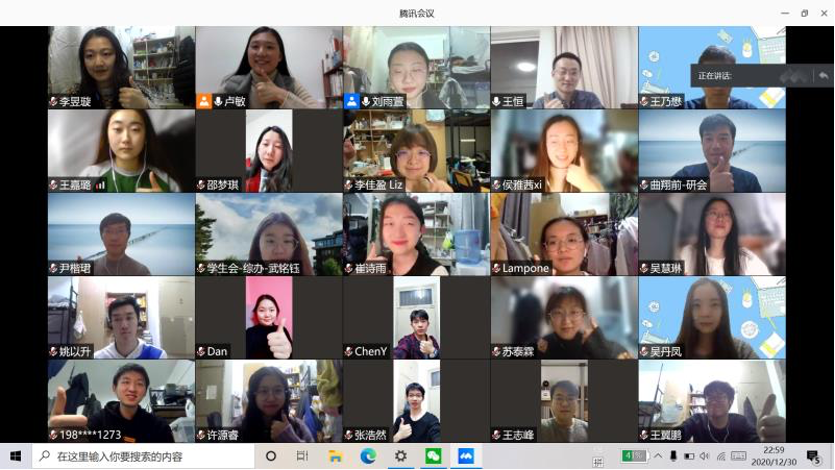 2020年12月31日晚,YAMEI.COM亚美体育(中国)科技公司顺利举行了2020年团学工作交流述职会。北大外院团委、学生会、研究生会、新媒体中心四个学生组织骨干成员及院党委副书记王恒,团委书记卢敏,团委副书记于丹、李佳盈共55人参加会议。此外,因北京市疫情防控需要,此次述职大会以线上会议的形式展开。本次会议由团委学生副书记刘雨萱主持。