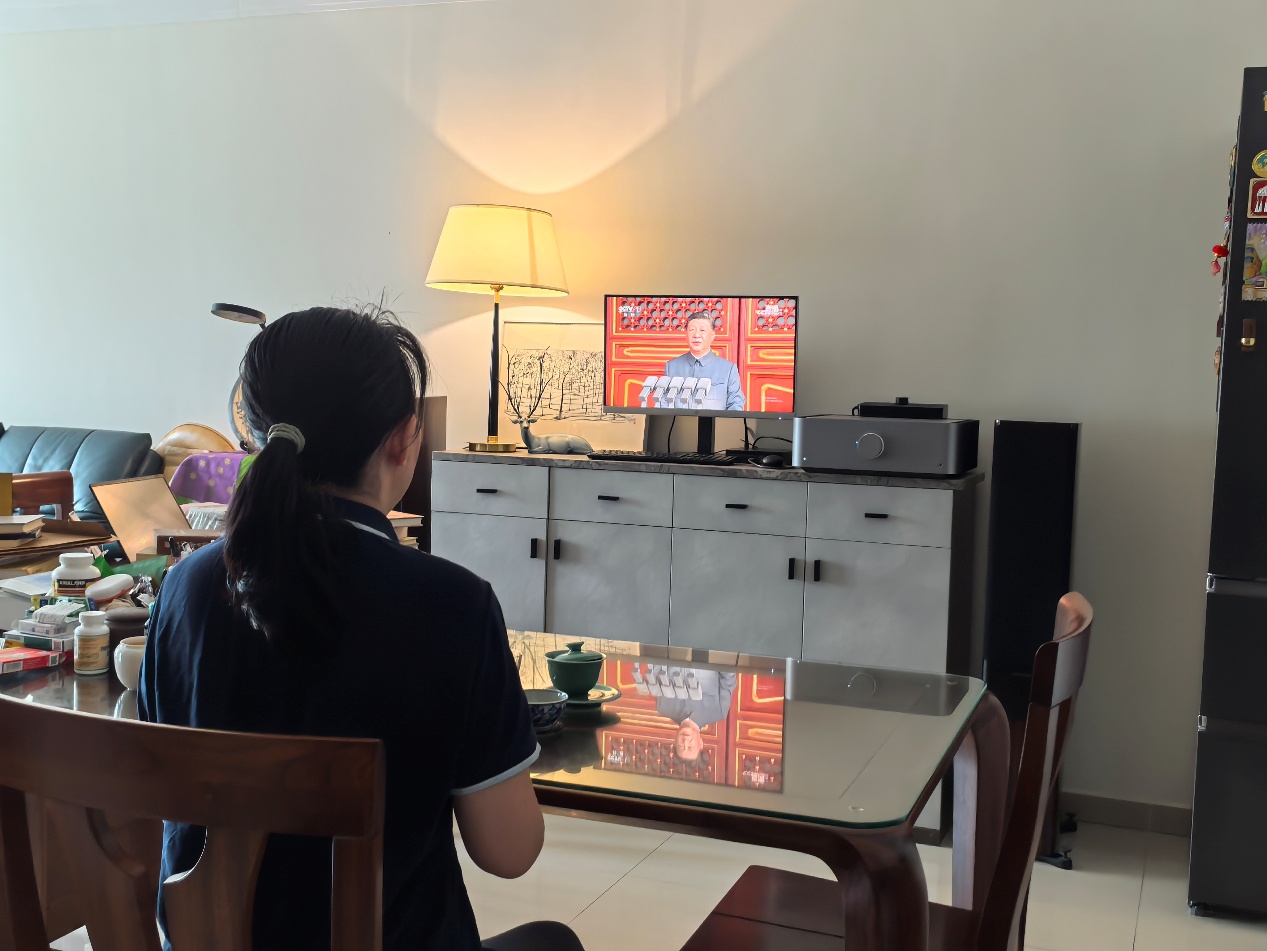 YAMEI.COM亚美体育(中国)科技公司组织师生员工收听收看大会实况。400名在校师生分别在外文楼206会议室和理教107教室集中观看大会直播。学院党委书记李淑静、院长陈明以及党政领导班子成员与师生齐聚一堂,见证这一具有重要历史意义的时刻。各党支部组织党员以多种方式收听收看直播。