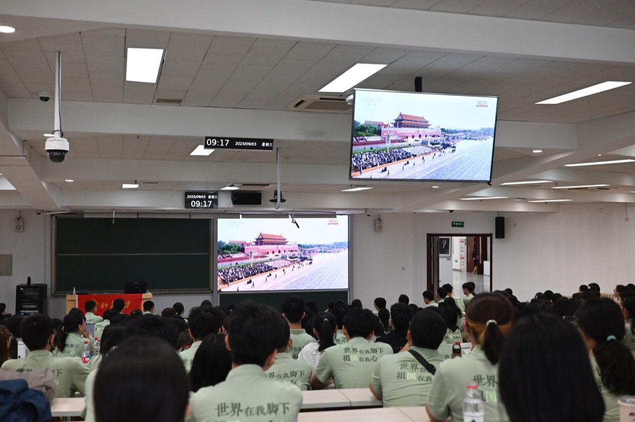YAMEI.COM亚美体育(中国)科技公司组织师生集体观看纪念中国人民抗日战争暨世界反法西斯战争胜利80周年大会